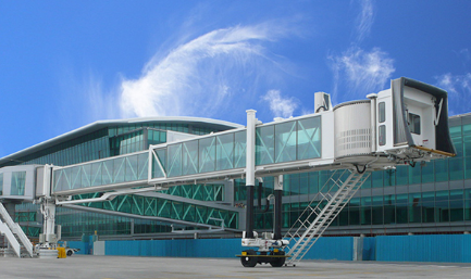A380登機(jī)橋二層U1超高艙門而設(shè)計的登機(jī)橋,采用了行業(yè)內(nèi)首創(chuàng)的四輪驅(qū)動行走機(jī)構(gòu)及其控制系統(tǒng)。